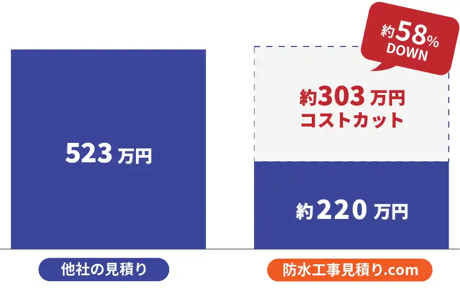 横浜市で防水工事の見積もりが大幅に削減した事例を3つ紹介します。人気の防水工事工法である塩ビシート防水機械固定工法と、改質アスファルト防水の費用削減事例です。